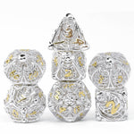Le jeu comprend un dé 1d4, 1d6, 1d8, 1d10, 1d12, 1d20, et 1d%, et il y a huit choix de couleurs différentes. Avec une grande qualité et une excellente prise en main, les Dés squelette en métal sont sûrs de rendre votre expérience de jeu encore plus amusante.