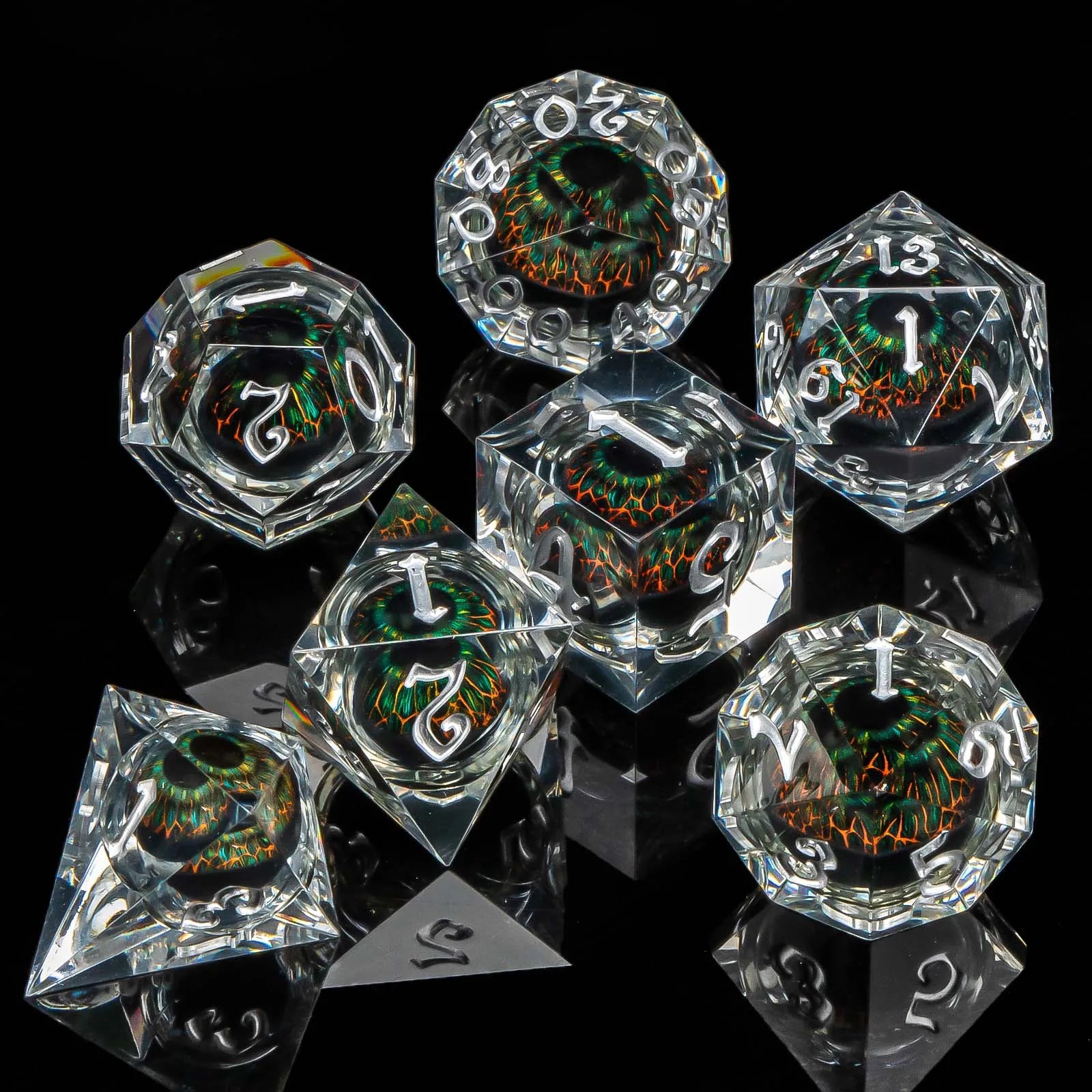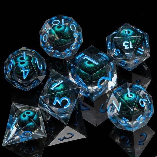 Set de dés Œil Maléfique : des dés polyédriques qui observent vos lancers
