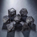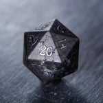 Dés Antiques en pierre noire : une présence intemporelle pour vos sessions de JDR
