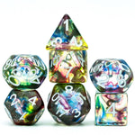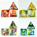 Voilà le plus beau set de dés que vous ayez jamais vu ! Avec ce set de dés de JDR colorés, vous aurez l'impression que chaque jet est une fête. Les sept dés de ce set sont en résine transparente et colorée.