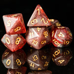 Ce set de dés brille de mille feux, les rendant magnifiques et uniques, ce qui en fait l’ajout parfait à toute collection de rôliste. Avec leur conception lumineuse, ces dés donnent vie à vos parties.