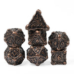 Chacun des 7 dés de ce set est un hommage à Cthulhu, le prêtre des grands anciens. En effet, ils sont tous encerclés par des pieuvres, un motif qui rappelle le jeu de rôle culte L'appel de Cthulhu. Les dés sont en métal poli, ce qui leur donne un poids impressionnant et une sensation de qualité supérieure. Les dimensions des dés sont également idéales pour une prise en main confortable.