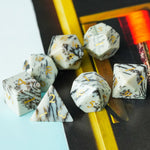 Aucune pierre naturelle n’évoque autant le luxe, l’opulence, le raffinement que le marbre. Avec ces dés en pierre semblables à du marbre, vous vous affirmerez comme un rôliste raffiné.