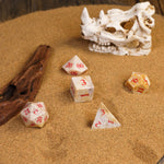 D’un beau marron clair, parsemés de taches foncé, les dés en pierre des sables poussent à l’introspection. Quand les dés rouleront dans la paume de votre main, des questions se bousculeront dans votre tête : comment en suis-je arrivé là ? / que faire pour me sortir de ce mauvais pas ? / quelle est la meilleure route à suivre actuellement ?