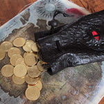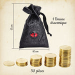 - 50 Pièces médiévales en métal, frappées d'une tête de dragon, fournies dans leur bourse draconique