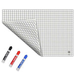 Mesurant 60 x 90 cm, la Battlemap Réversible - Carré et Hexagone propose des hexagones de 2,5 cm d'un côté et des carrés de 2,5 cm de l'autre (le format de case standard pour D&D). Ainsi, vous pourrez l'utiliser aussi bien pour des JDR utilisant des hexagones que pour ceux ayant recours à des carrés pour les déplacements.