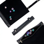 - Piste à dès originale - en plus de contenir vos nombreux dés et un stylo, vous pouvez déplier votre trousse pour en faire une piste de dés : vous protégez vos dés et la table où vous jouez (votre MJ vous dira merci).