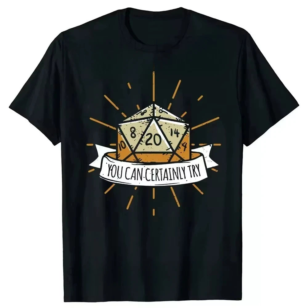 Ce tee-shirt D20 "Tu Peux Toujours Essayer" est conçu par un rôliste pour des rôlistes : coton confortable, impression résistante et une coupe pensée pour rester agréable même durant les longues soirées de campagne. Le visuel central — un d20 stylisé et la phrase pleine d’humour — fonctionne comme un totem de table : il attire les regards, déclenche des sourires et installe immédiatement la bonne humeur. Portez-le en maître du donjon qui prépare une session épique, ou en joueur qui vient défendre une dernière tentative critique.