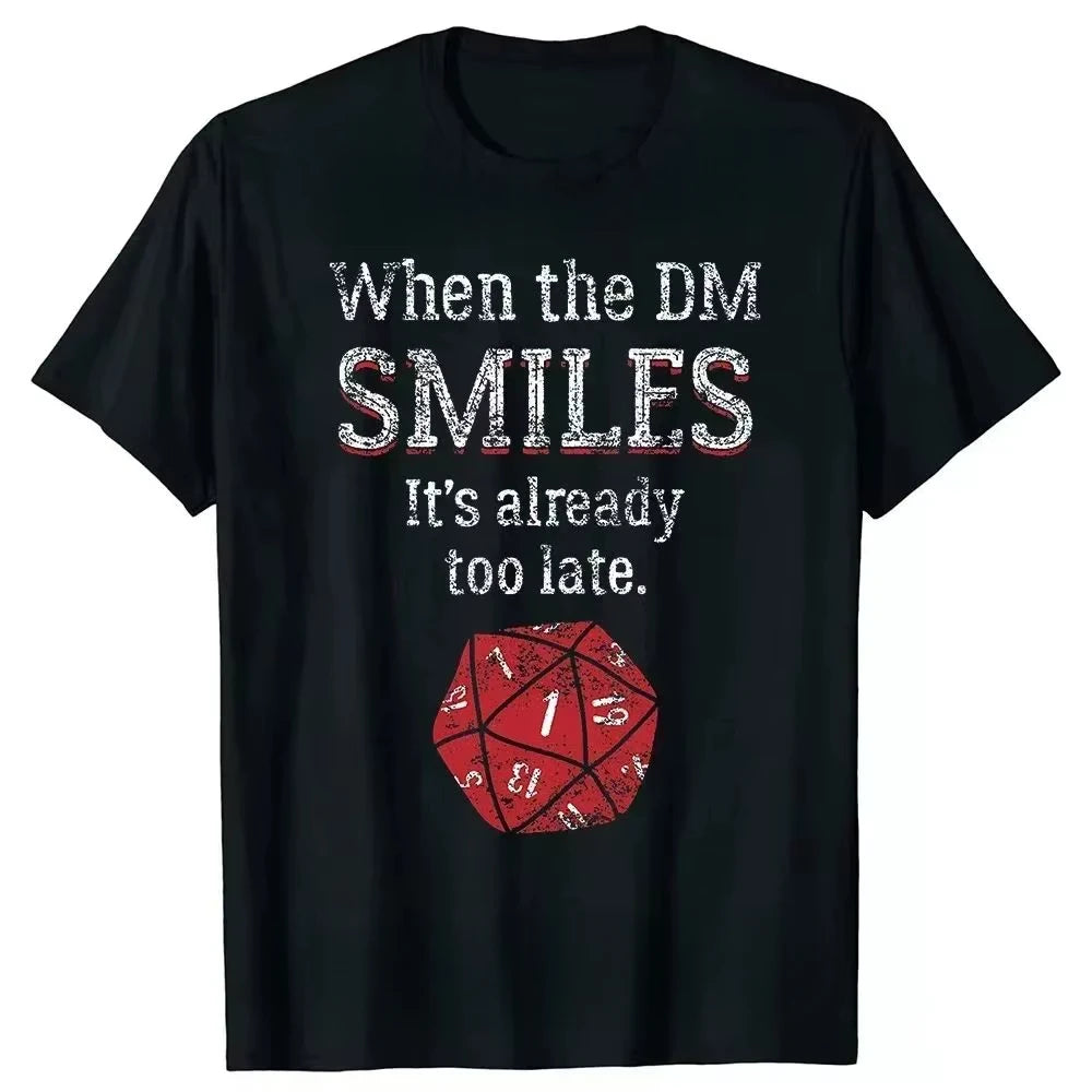 Ce tee-shirt "quand le maître de jeu sourit" capture parfaitement cette sensation universelle que tous les rôlistes ont vécue. Avec son message sans équivoque "When the DM smiles, it's already too late" accompagné d'un magnifique D20 rouge ensanglanté, ce vêtement noir résume en quelques mots l'une des vérités fondamentales du jeu de rôle. L'effet vintage de la typographie rappelle les avertissements des vieux manuels de JDR, tandis que le dé rouge sang ajoute une touche dramatique parfaite. Fabriqué en coton respirant de qualité supérieure, ce tee-shirt te garantit un confort optimal pendant ces longues sessions où tu devras affronter les pièges sadiques de ton MJ. Le tissu léger évacue l'humidité efficacement, te permettant de rester concentré même quand la tension monte autour de la table.