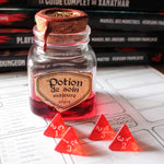 Ôtez le bouchon de liège cacheté avec passion, lancez les dés fournis à l’intérieur et regagnez vos points de vie. En plus d’être pratique, ces potions sont parfaites pour décorer vos tables de jeu de rôle ou étals d’alchimiste.