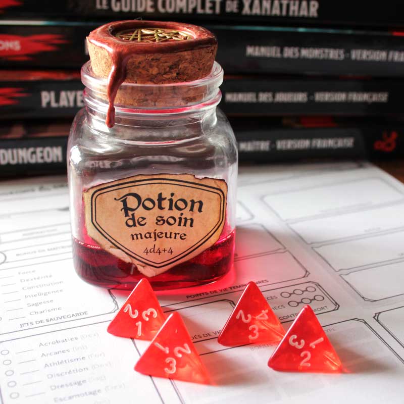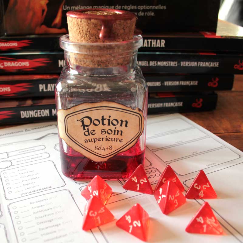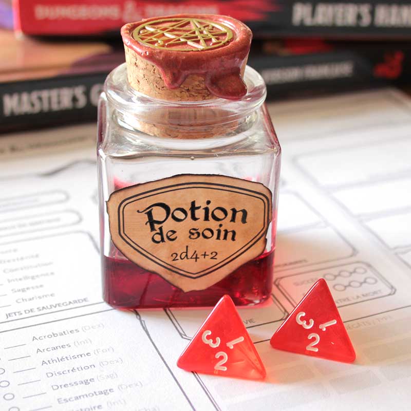Lorsque vous consommez une potion de soin en jeu, pourquoi vous contenter de simplement lancer des dés alors que vous pouvez utiliser une vraie potion de soin pour récupérer vos points de vie ?