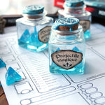 Ôtez le bouchon de liège cacheté, lancez les dés fournis à l’intérieur et regardez votre ennemi se prendre vos projectiles magiques de plein front. En plus d’être pratique, ce flacon est un véritable objet magique, parfait pour décorer vos tables de jeu de rôle ou un étal d’alchimiste.