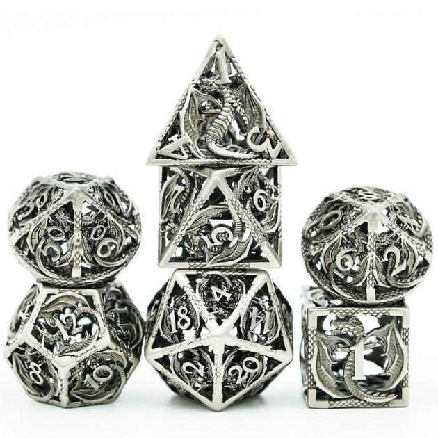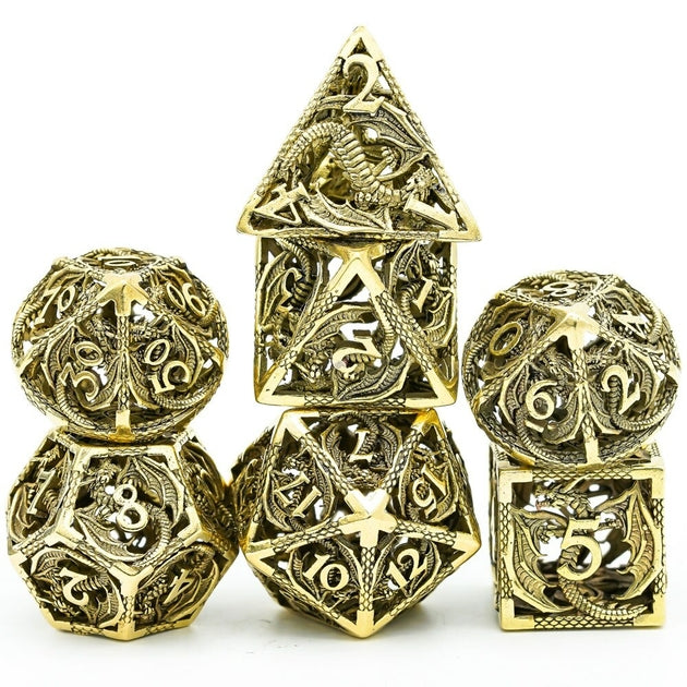 Les dés en métal sont réputés pour leur résistance et leur design originaux, mais ces dés vont plus loin. En effet, la spécificité de cette série réside dans leur conception, puisque chaque polyèdre est creux, leur donnant un aspect unique.