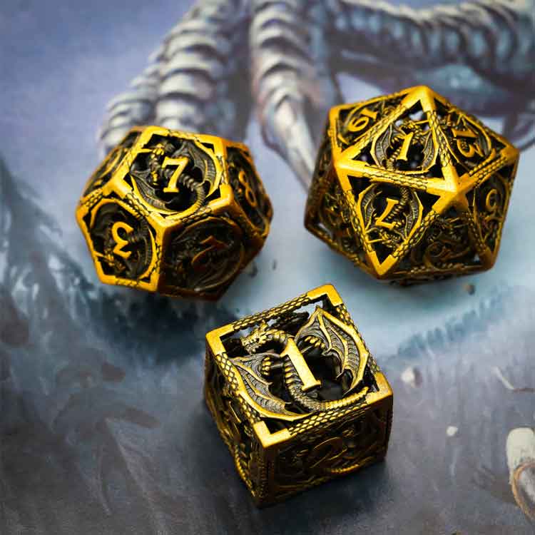 Bonjour aventurier ! Vous aimez les dés en métal dragon et vous cherchez un set original qui a du style ? Cette collection est faite pour vous.