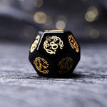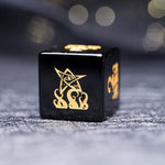 Le Mythe de Cthulhu Revisité : les dés sont gravés avec des symboles ésotériques inspirés par les récits de H.P. Lovecraft et l'iconographie du Grand Cthulhu lui-même. Chaque dé est une œuvre d'art unique qui illustre l'horreur cosmique et la majesté des Grands Anciens.