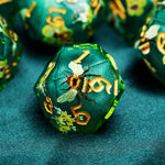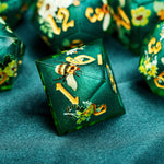 Derrière leur délicatesse apparente, ces dés sont prêts pour l’aventure. Ils allient solidité et finesse, tout en donnant à chaque lancer une aura particulière. Leur simple présence transforme une table de jeu classique en scène digne d’un conte. Que ce soit pour du D&D, du Pathfinder, ou toute autre campagne fantasy, ce set vous accompagne et devient un totem personnel, un peu comme un objet magique.