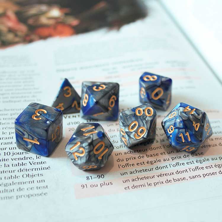 Avec votre nouveau set de dés marbré, vous avez enfin les dés qui vous correspondent : classes et profonds à la fois. Avec 9 combinaisons de couleurs différentes, vous avez le choix pour trouver les dés qui sont faits pour vous.