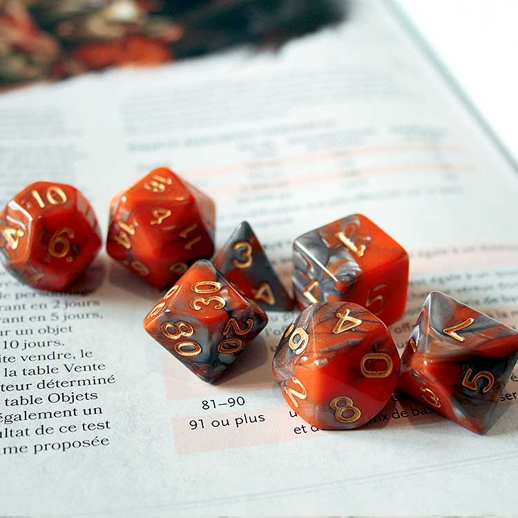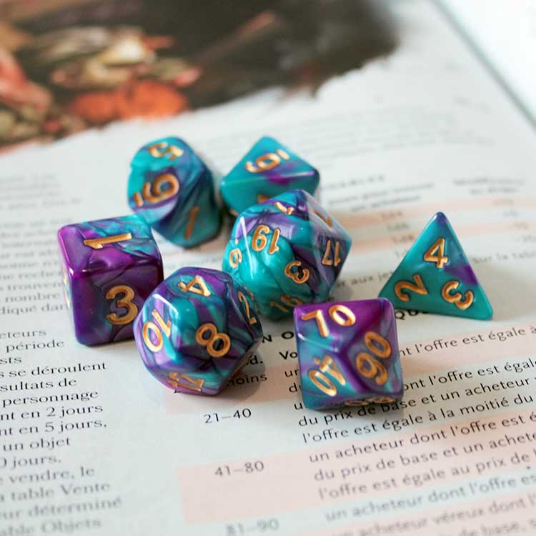 Avec cette collection de dés en résine aux couleurs bigarrées, vous avez les dés de jeu de rôle qu'il vous manquait :