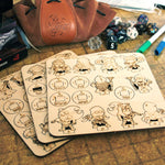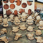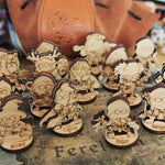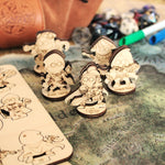 Chaque aventurier est dessiné et découpé avec soin. Détachez-les du support en bois et clipsez-les dans le socle qui lui est associé. Voilà ! Vous êtes prêt pour partir à l’aventure.