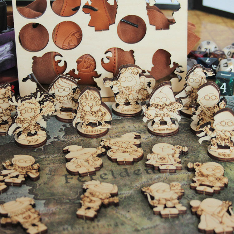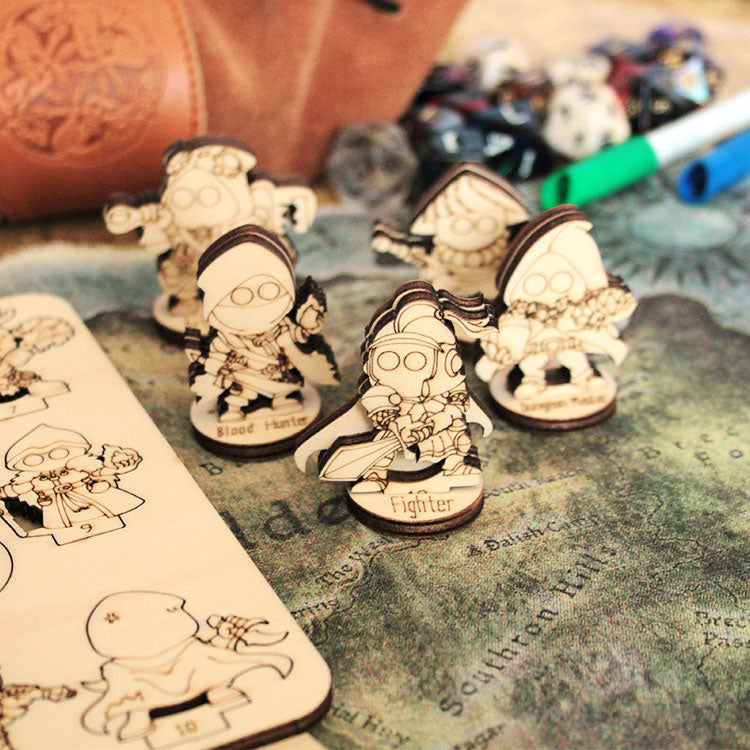 Cette série de 15 figurines en bois est à l'effigie des classes emblématiques de Donjons et Dragons, mais inutile de vous limiter à D&D, vous pouvez tout de même les utiliser pour tous vos JDR d’heroic fantasy.